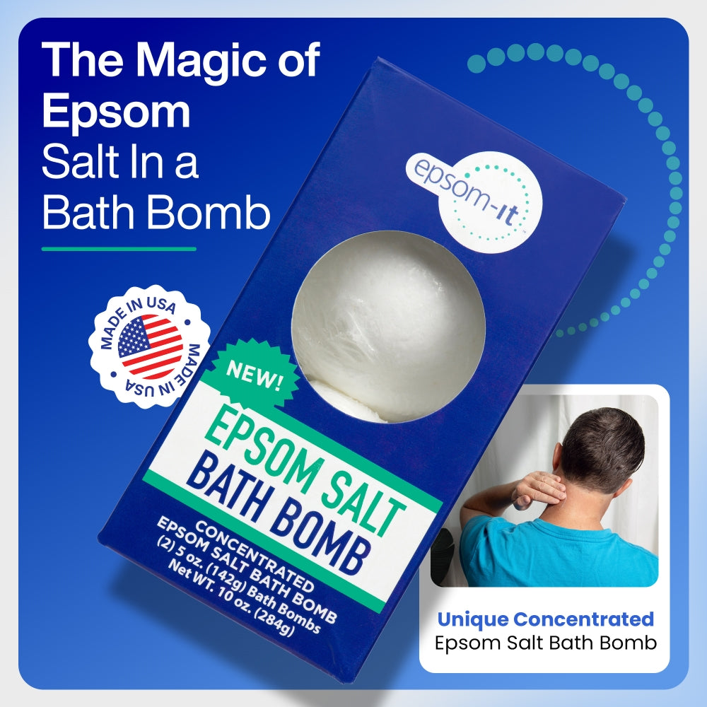 - Epsom-It Bath Bombs provide a no-fuss, drop-and-soak solution to ease muscle discomfort. Packed with 7% concentrated Epsom Salt, simply drop it in the bath, soak, and feel refreshed. Lightly scented, Epsom-It's concentrated Epsom Salt bath bomb is optimally formulated for post-workout use and general muscle discomfort. It's the "serious" bath bomb for your everyday muscle issues!